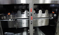 Ausführung wie JetTunnel, jedoch zusätzlich mit Transportband und dynamischen Niederhaltesystem, das die (Stand-) Beutel in Position hält.